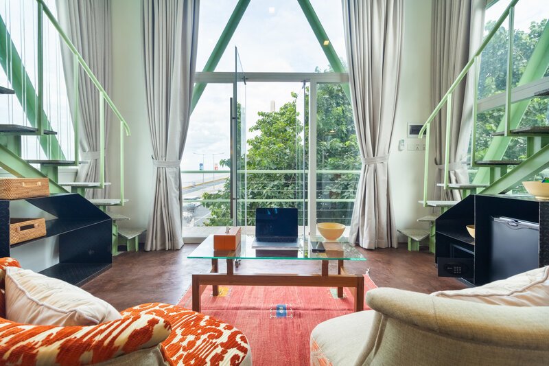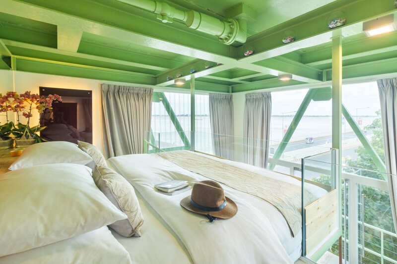 Started in 2024, this unique project in repurposed architecture was completed in September 2025. The one-of-the-kind duplex comes with a rooftop pool towering 13-meter high in Koh Pich, on Phnom Penh Four Rivers banks. Read more.